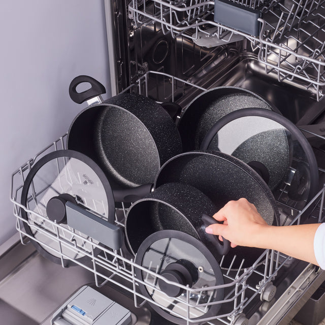 Het antiaanbakoppervlak zorgt ervoor dat voedsel niet blijft plakken of aanbrandt, zelfs niet bij hogere temperaturen, wat je helpt betere resultaten te bereiken met minder olie. De graniet-effect afwerking geeft niet alleen een eigentijdse uitstraling aan je keuken, maar biedt ook langdurige prestaties door kras- en vlekbestendigheid. Perfect voor zowel beginnende koks als ervaren chefs, combineert de Nebula-set functionaliteit en stijl. Of je nu sauzen suddert, groenten bakt of eieren bakt, elk stuk zorgt voor een consistente warmteverdeling voor heerlijke, gelijkmatig bereide maaltijden.