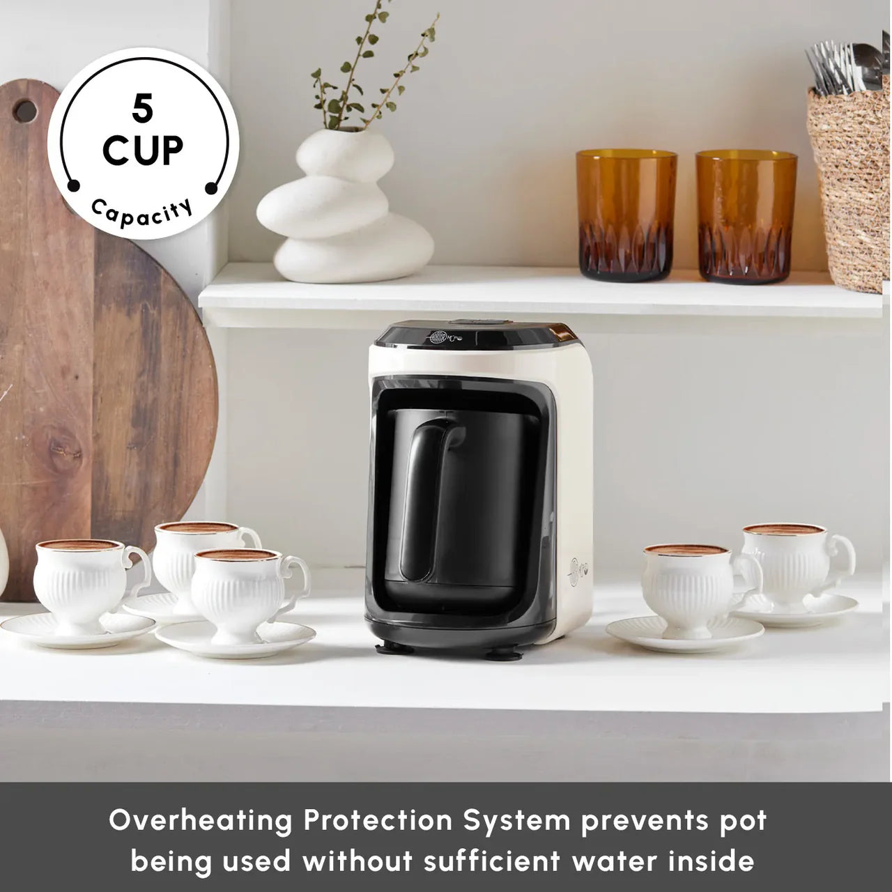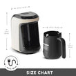 Deze elektrische Turkse koffiemaker is ideaal voor het bereiden van gebrande Turkse koffie, Turkse koffie met melk, warme chocolademelk met melk en instantkoffie met melk in de perfecte consistentie. Met een capaciteit van 5 kopjes kunt u eenvoudig uw gasten bedienen.
