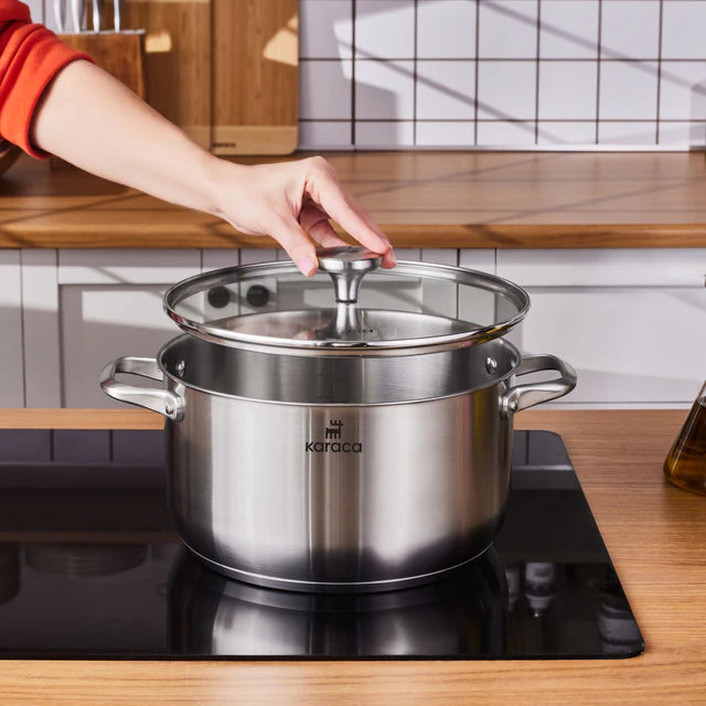 - Karaca Elite Roestvrijstalen Inductie Kookpot met Deksel (26 cm) (6,7 L)