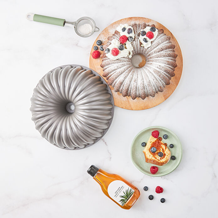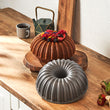 Dankzij de gegoten aluminium behuizing is deze vorm zeer duurzaam en verdeelt de warmte sneller en gelijkmatiger dan andere materialen. Dit zorgt ervoor dat je cake gelijkmatig en perfect van buiten naar binnen bakt.