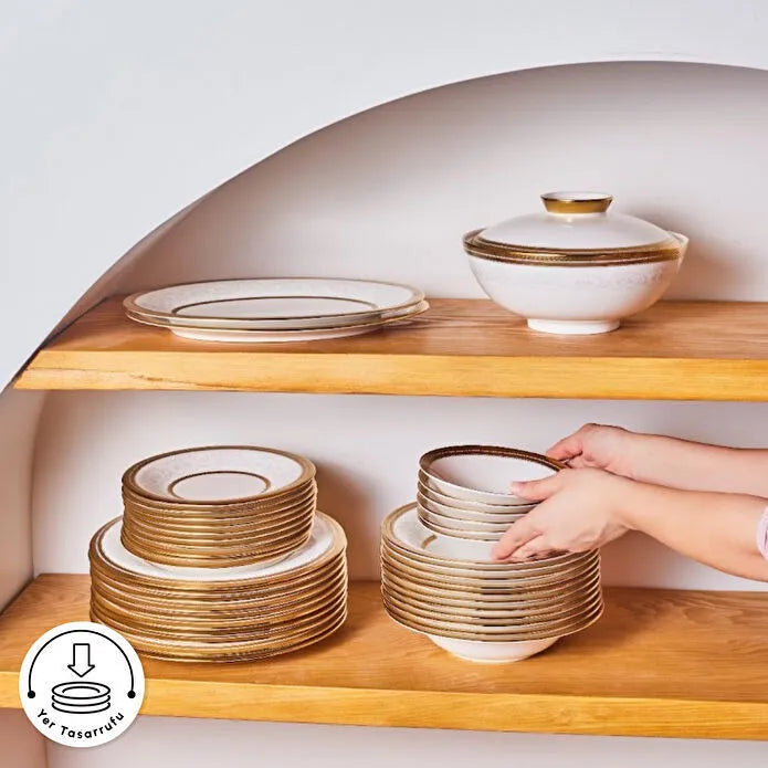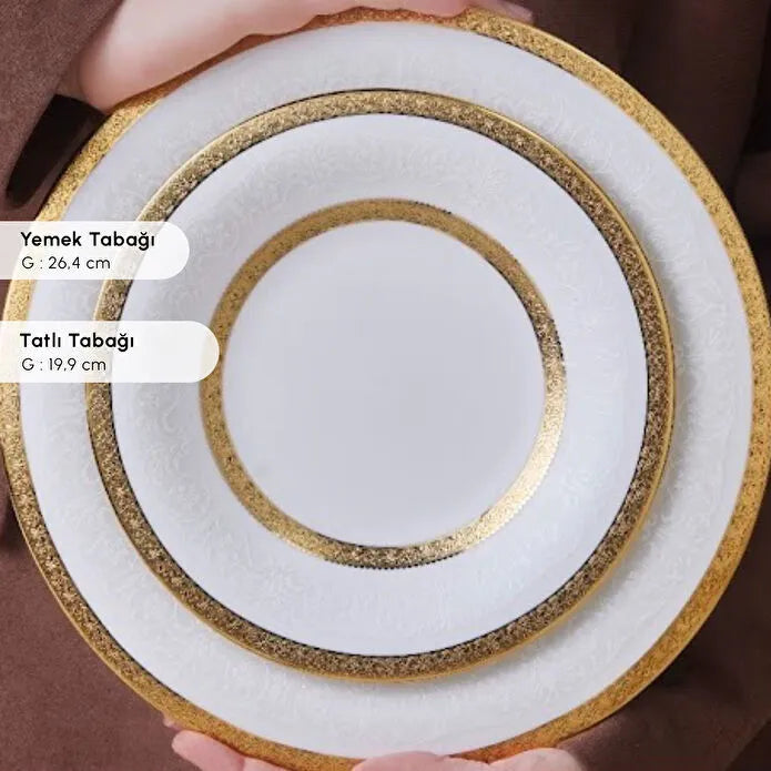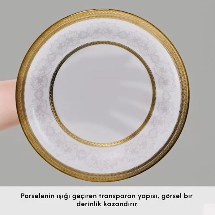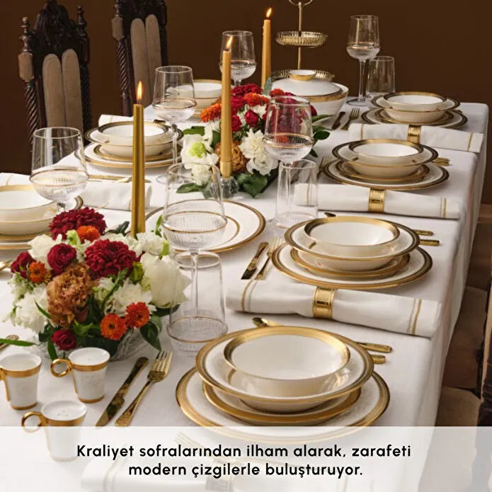 İncelikle tasarlanmış kenar detayları, zarif desenleri ve altın yaldız gibi asil dokunuşlarıyla dikkat çeken Royal Bone yemek takımları; hem günlük kullanımlarda sofistike bir atmosfer yaratmak hem de özel davet sofralarında büyüleyici bir etki bırakmak için idealdir.