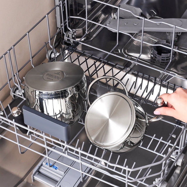 Het speciaal gepolijste buitenoppervlak behoudt de glans van de eerste dag. Dankzij de capsulebodem, die op alle warmtebronnen – inclusief inductie – voor optimale warmteoverdracht zorgt, bespaart het tijd en energie.