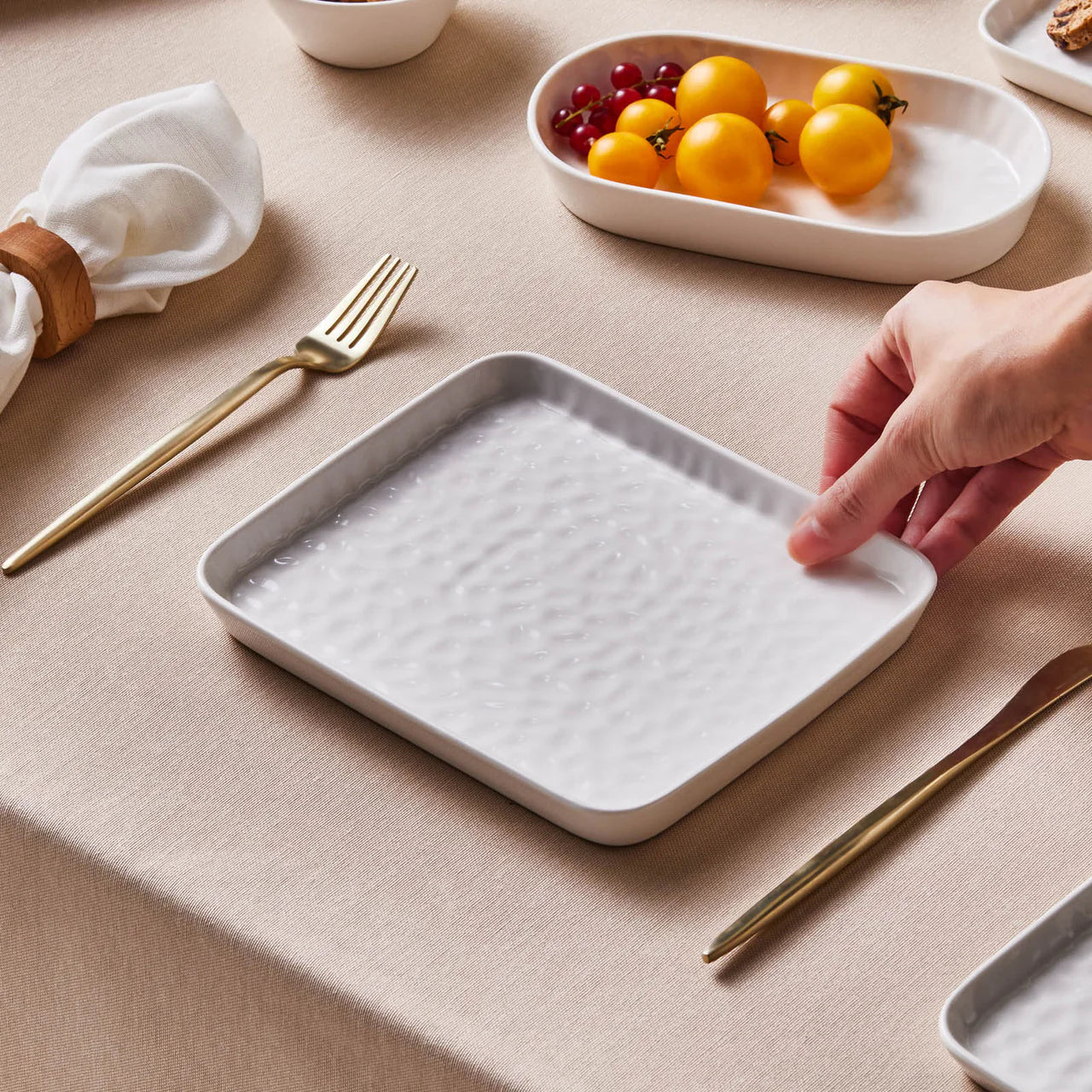 Ailemle, dostlarımla bir araya gelip keyifli zamanlar geçireceğim sofralarda, özellikle tabak seçerken, zarafeti, kaliteyi ve en önemlisi o sofranın ruhuna hitap eden bir dokunuşu arıyorum. Yeni bembeyaz serisini de tam olarak bu yüzden çok seviyorum. Bu seri, ince ve zarif görüntüsüyle benim için oldukça özel, zamansız ve aynı zamanda çok da kullanışlı.