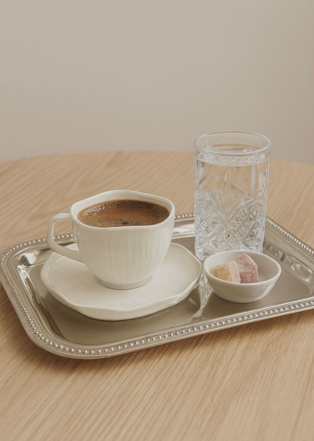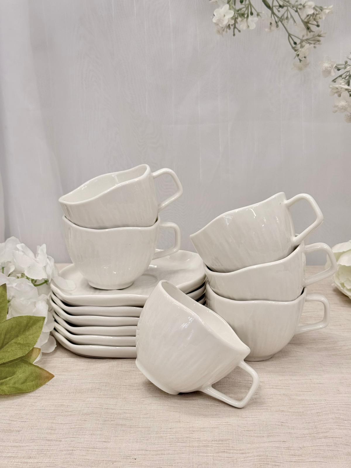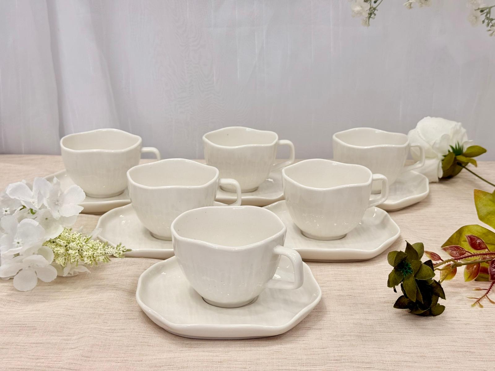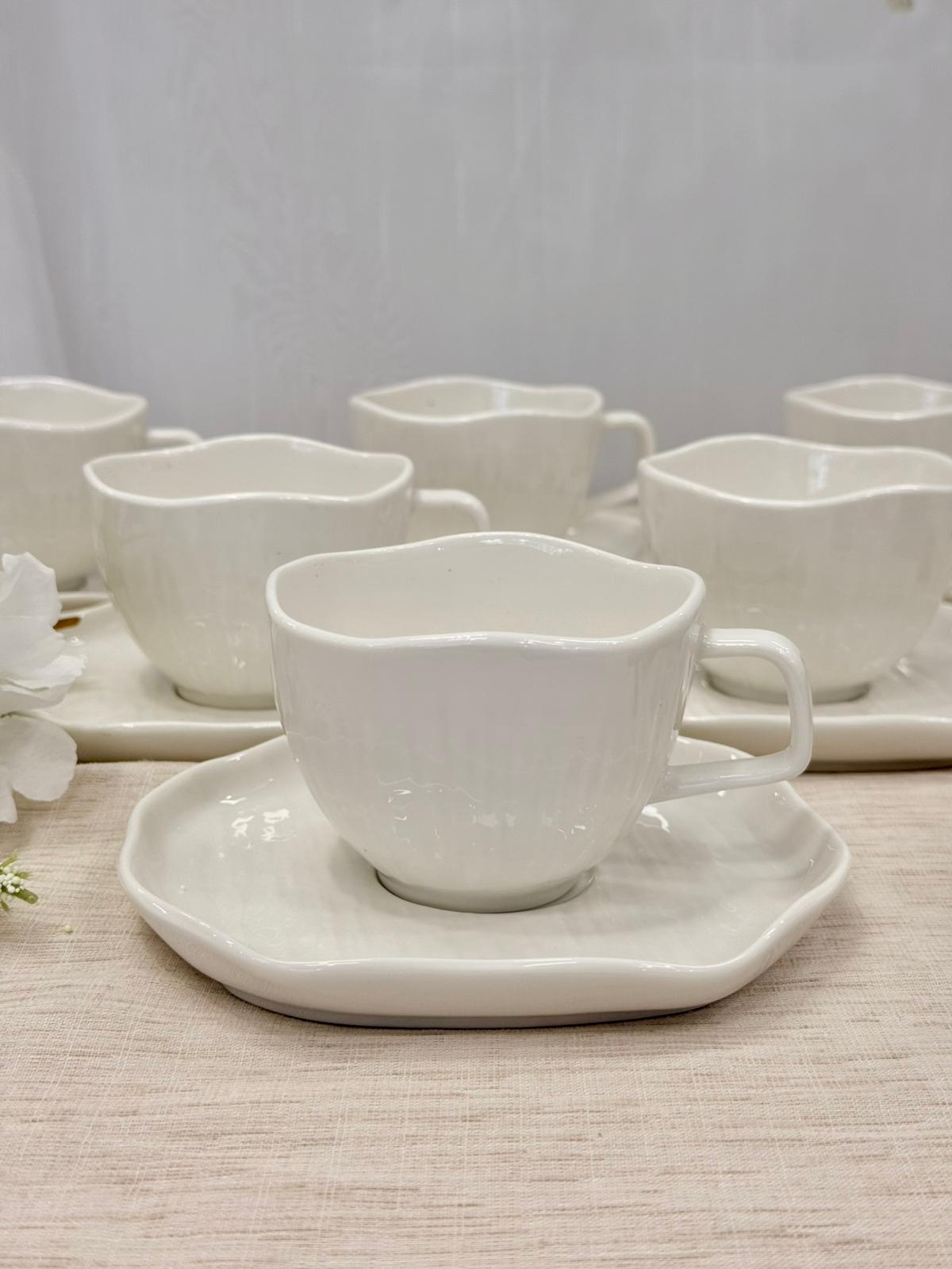 Kadoland Clover (Cermico) Beyaz 6 Kişilik Büyük Kahve Fincanı Seti