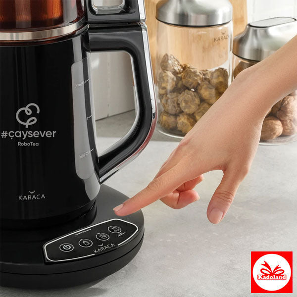 Geniet van het comfort van Çaysever Robotea, die uw thee automatisch zet, water en thee aan het reservoir toevoegt en de rest aan het apparaat overlaat.