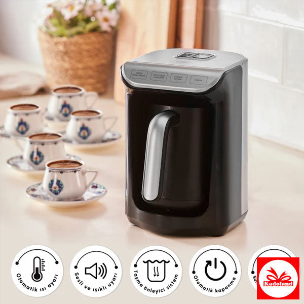 Het kookt Turkse koffie met melk, warme chocolademelk met melk, oploskoffie met melk tot de ideale consistentie.